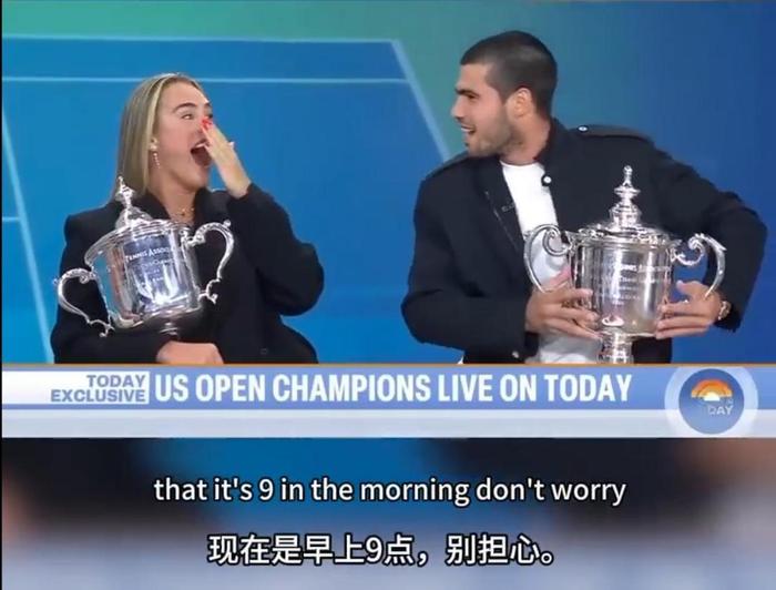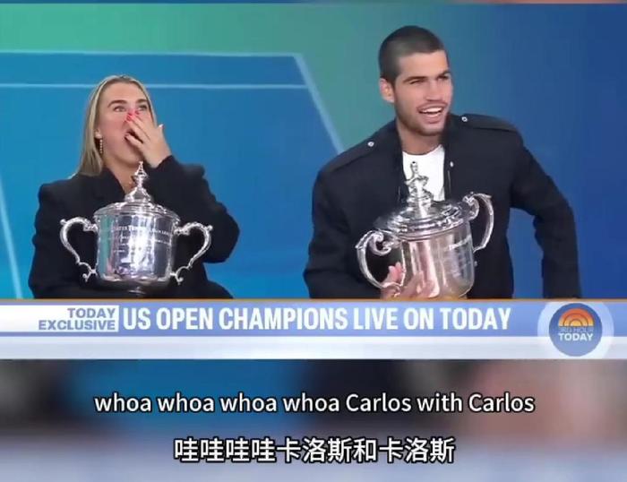 一个美网冠军,给阿尔卡拉斯带来了这么多的财富和荣誉,不知道是不是心情大好的缘故,赛后也让大家看到了西班牙人幽默和可爱的一面。